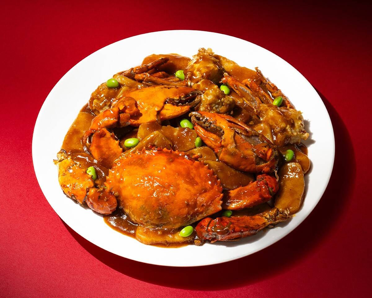 嚴選鮮活大沙公,蟹膏飽滿、蟹肉厚實,經大火快炒激發鮮香,拌入特製醬汁後香氣四溢,鹹鮮中帶著一抹微甜,完美展現江浙菜的濃郁醬香。搭配傳統「寧波年糕」入菜,純糯米手工製成的年糕質地細密柔韌、煮後不糊不爛,帶有自然米香與Q彈口感,最適合吸附醬汁精華。蟹香與醬香交織,年糕緊緊裹住蟹膏與湯汁,入口即是濃郁多汁、層層遞進的風味。