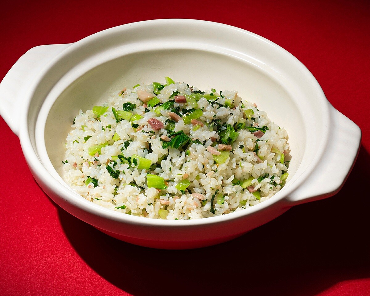 「菜飯」對許多上海人來說,不只是家常料理,更是許多人心中最純粹、最撫慰人心的家鄉滋味。源自江南地區的經典做法,將青江菜與家鄉肉切丁,與香氣四溢的長米一同煮製,讓米飯吸飽蔬菜清甜與臘肉的油香,色澤油潤、米粒分明。「春申食府」以傳統手法入菜,將食材入砂鍋慢煨,讓米飯在鍋底形成微微焦香的鍋巴,增添口感層次。