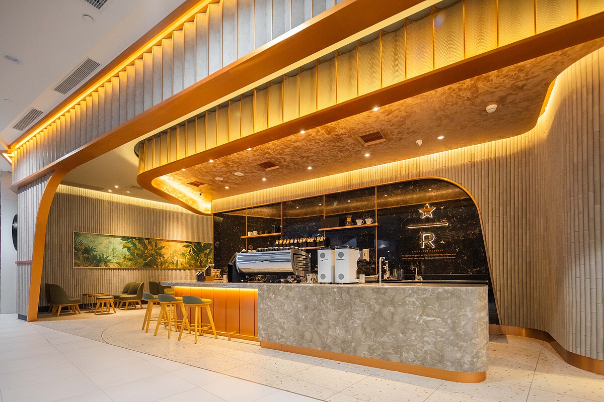 星巴克南港LALA門市亮點:現代簡約、古銅金屬元素空間