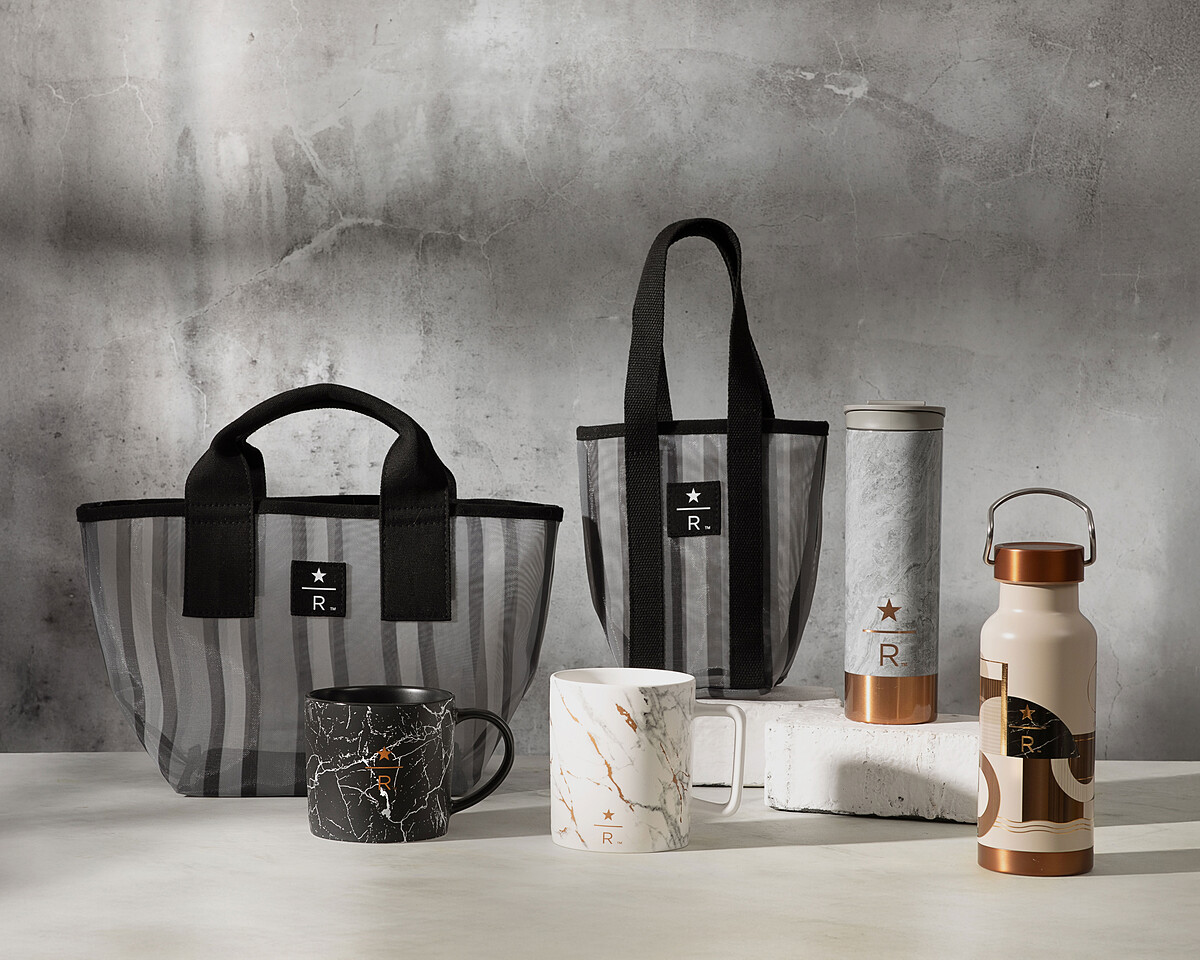 星巴克南港LALA門市推出一系列限定商品,從「白石紋典藏馬克杯」、「黑石紋典藏馬克杯」、「石紋典藏不鏽鋼杯」、「幾何典藏不鏽鋼水壺」、「黑典藏直紋網布手提袋」及「黑典藏直紋網布隨行杯袋」,「白石紋典藏馬克杯」靈感來自南港LALA門市內部設計風格,霧面白底呈現天然石材的純粹質感,點綴仿金屬花紙工藝,超值得收藏。