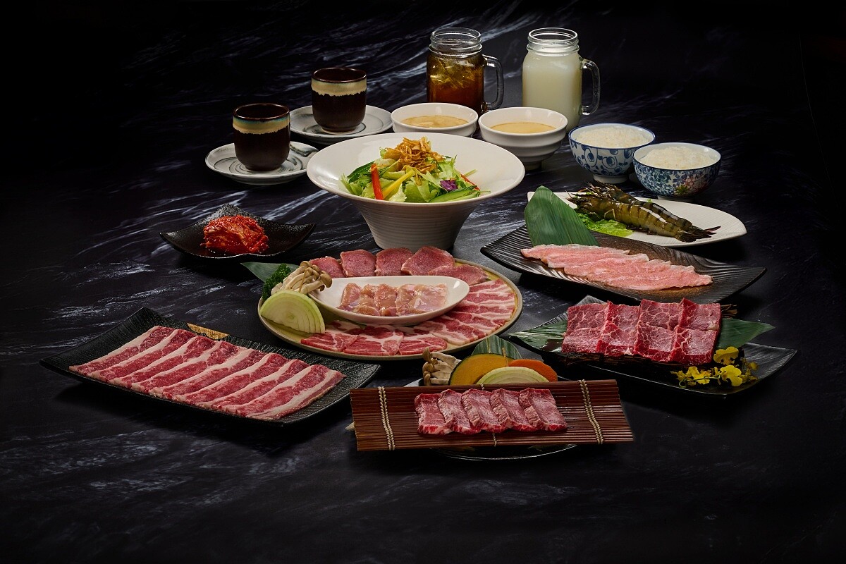 4/25~6/1活動期間限定販售,內容包含:沙拉、前菜、牛舌滿貫拼盤、一品料理、日本國產牛老饕拼盤、大蝦、石鍋拌飯、湯品飲料與甜點。