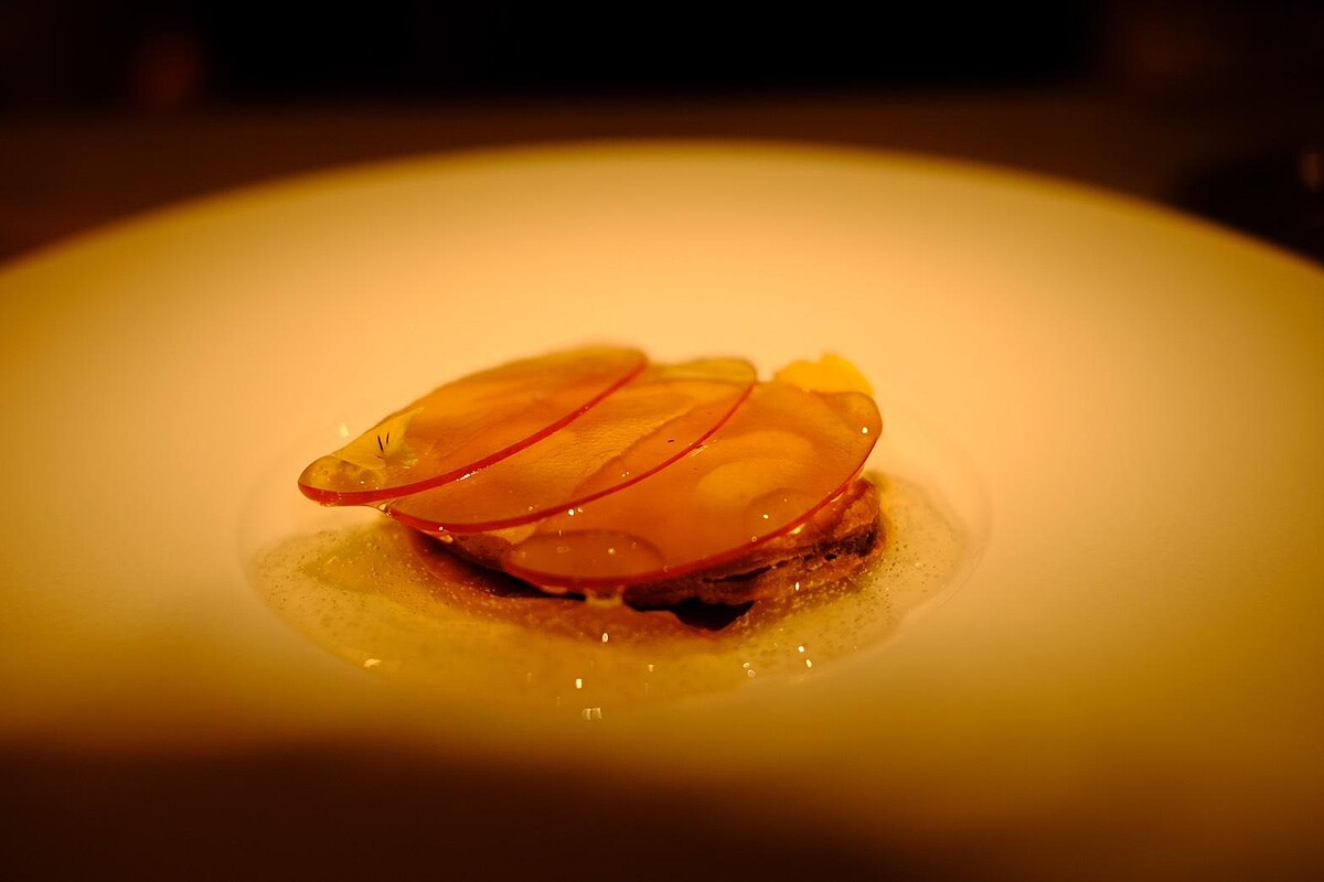 檸檬的酸香提亮整體味道,酪梨的柔滑又讓口感多了一層奶油般的潤度,主廚還藏了些細節風味在裡頭,像是些微的香草氣息,整體吃起來是非常乾淨的味道,清清爽爽地收尾前段鹹食區段。