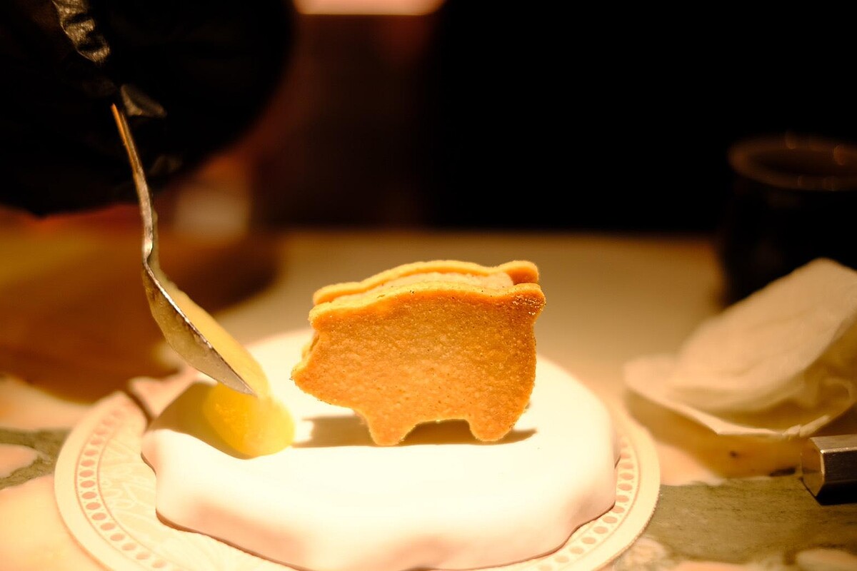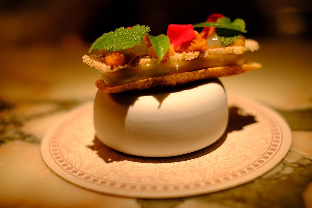 用黑芝麻醬做內餡,香濃到一個不行,酥皮咬下去的那一刻是脆的,但裡面那股濃濃的芝麻香氣一衝出來,整個嘴巴都在喊「好香!」Chef Season把中式食材玩到一種精緻藝術的等級,這道泡芙非常有記憶點,會讓你想回去再吃一次。