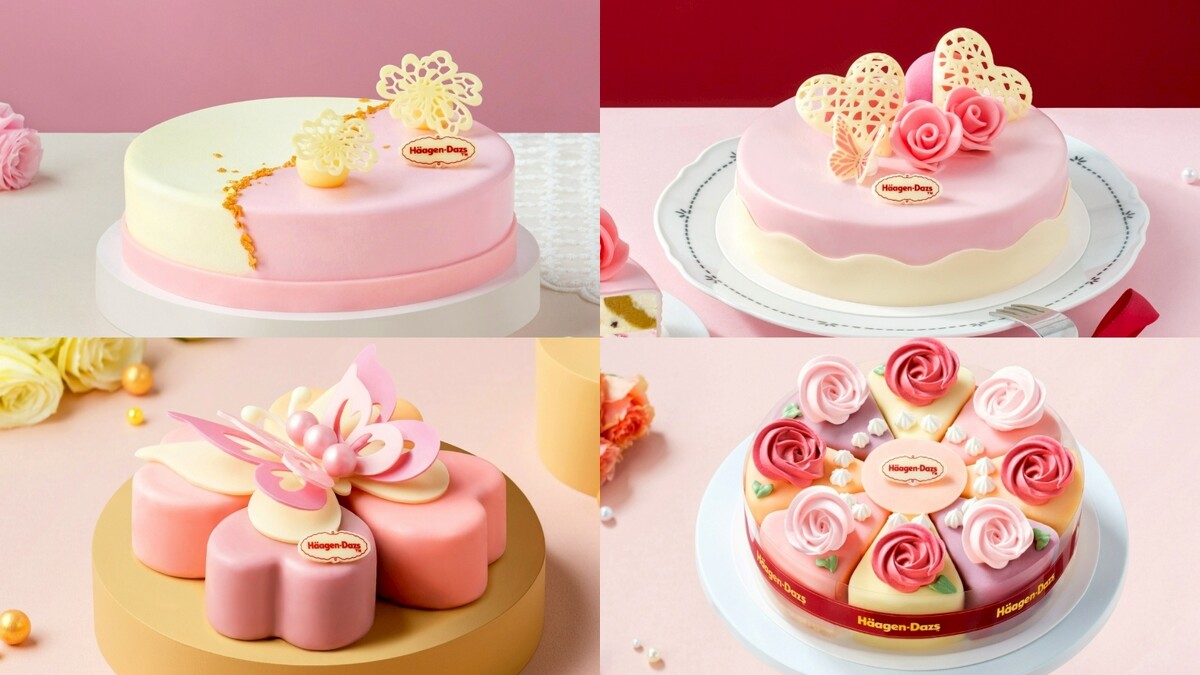 哈根達斯將簡約優雅融入甜點美學,全新「玫瑰心語」以草莓與開心果交織浪漫滋味,搭配手工翻糖玫瑰與巧克力蝴蝶綻放柔美心意,「浪漫綺麗」則以夏威夷果仁與草莓冰淇淋融合濃郁堅果香與果香甜韻。另有「蝴蝶幸運草」、「花開幸福」兩款小尺寸造型蛋糕,以恰到好處的甜蜜,定格屬於母親的幸福時光。