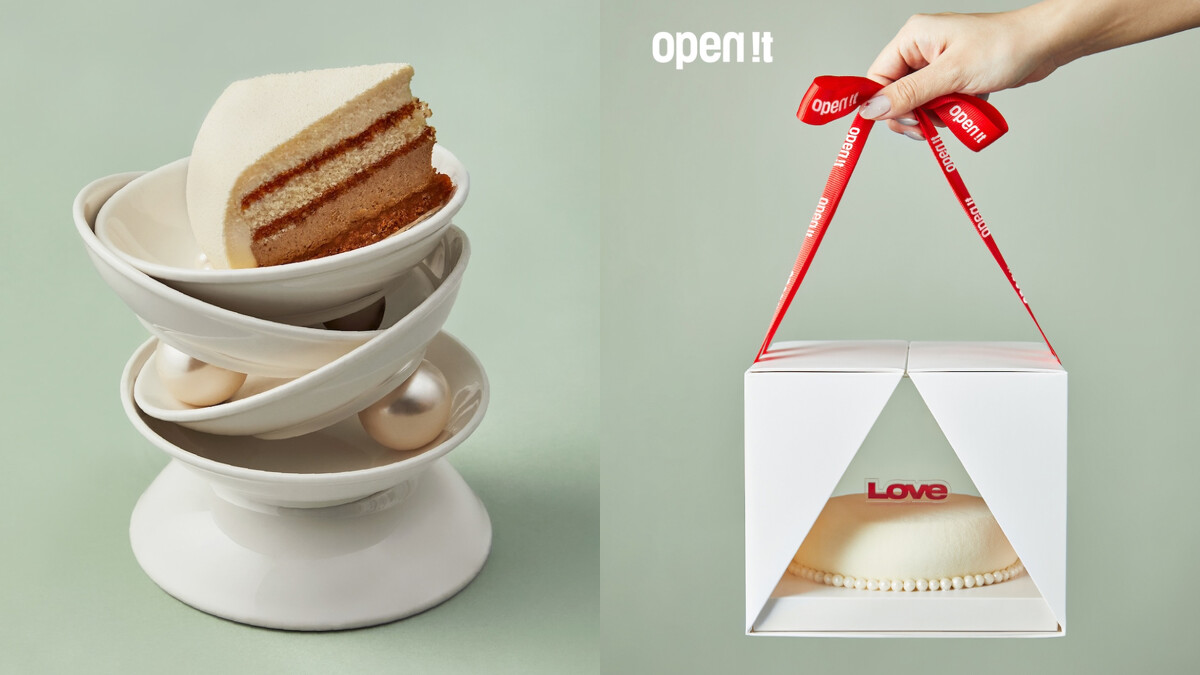 「open it.」以一款極致純白珍珠項鍊蛋糕,將對母親的愛戀化為舌尖的溫柔。蛋糕內是伯爵茶香的提拉米蘇與手工熬製的鹽之花焦糖醬,細膩交融如同母愛般層次豐富。外表則以純淨的白色巧克力噴砂展現低調的優雅,再以晶瑩的可食用珍珠項鍊點綴,彷彿為母親戴上愛的冠冕。這份純白質感一如母親的純粹心意,充滿儀式感。