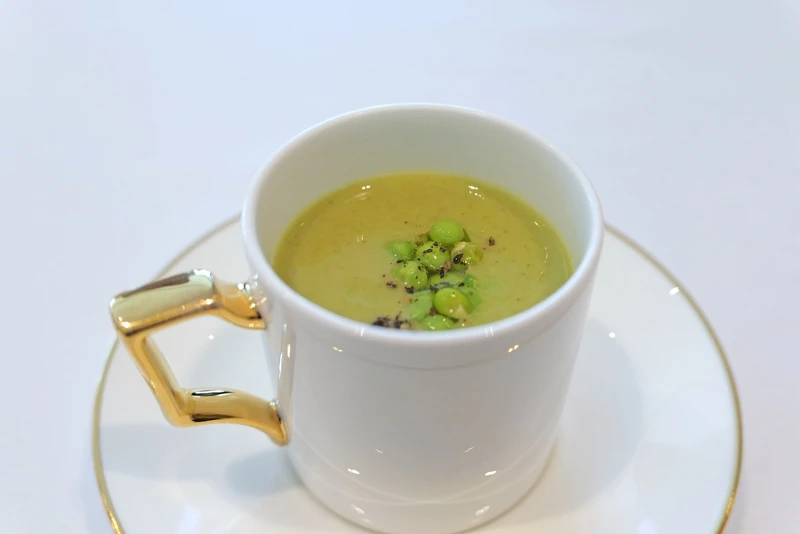 以大量甜豆仁製作,彷彿一杯醒胃的綠色Espresso,感受濃湯滑過身體的瞬間,能量滿滿、十分舒暢。