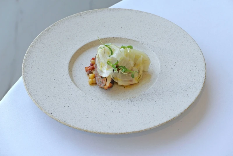 擷取佛羅倫斯牛肚包元素以 tapas 形式呈現,煙燻上菜的過程充滿儀式感。