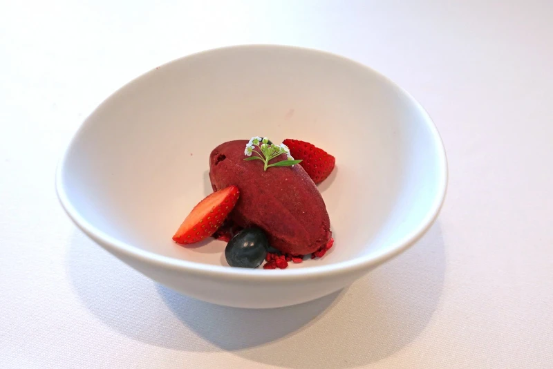 義式冰淇淋乳脂低、滋味酸甜,既是 Pre Dessert 也具清口作用,相當清爽。