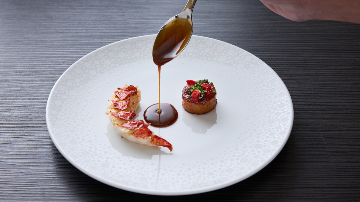 烤藍龍蝦與綠胡椒馬德拉酒醬地瓜