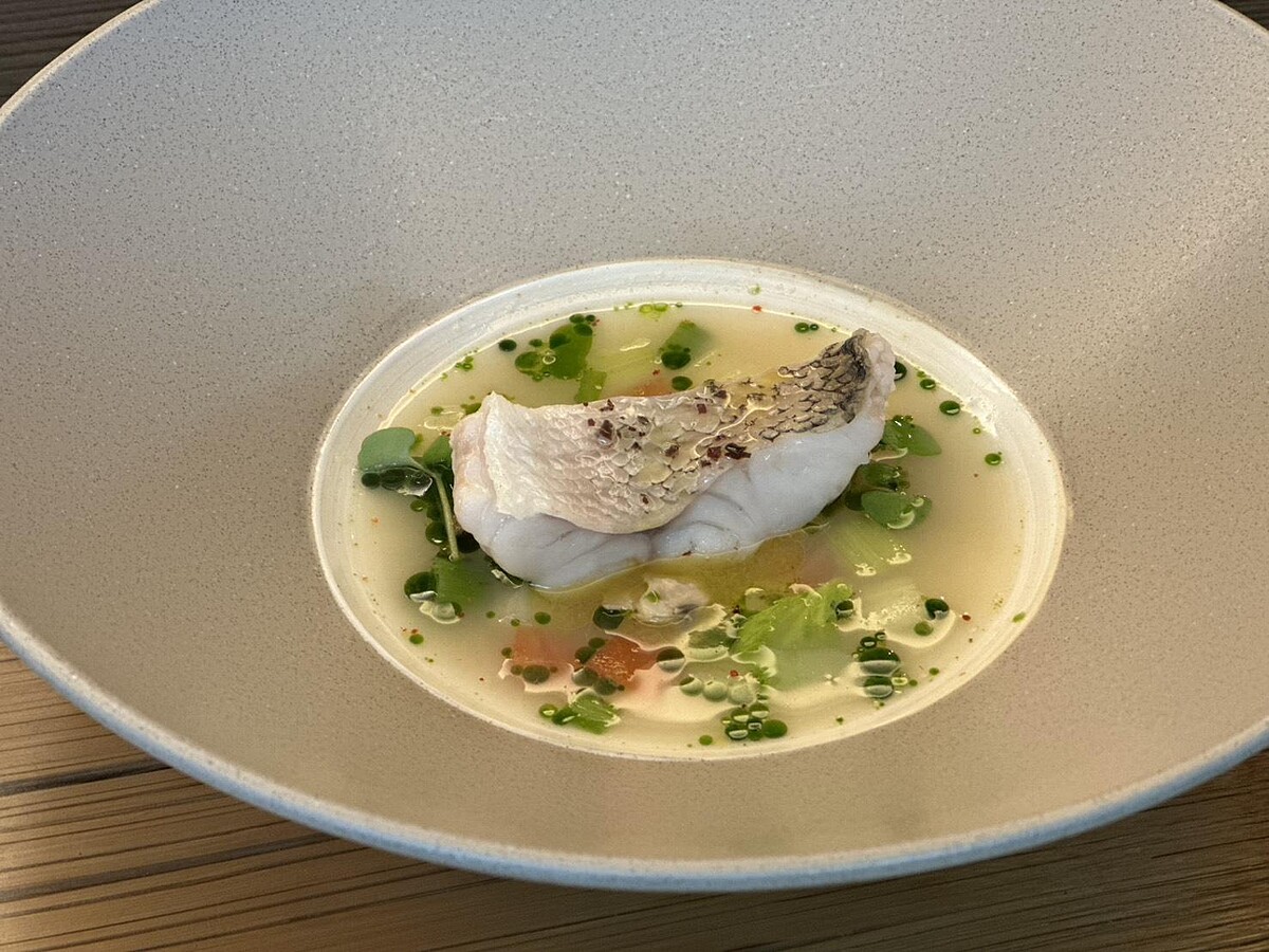 選用春季當令的雨印鯛,清蒸保持魚肉細緻,蛤蠣與三種蔬菜熬煮的湯底帶出春日鮮甜,法國Beurre Bordier的海藻奶油加了一層海風鹹香,讓這道魚湯像極了北投山間的一場春雨。
