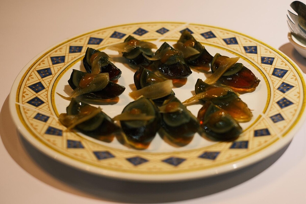 經典台式小吃再升級,皮蛋切得剛好入口,上頭鋪上嫩薑與酸甜平衡的金桔醬,清香醒胃,翻轉了你對皮蛋的刻板印象。