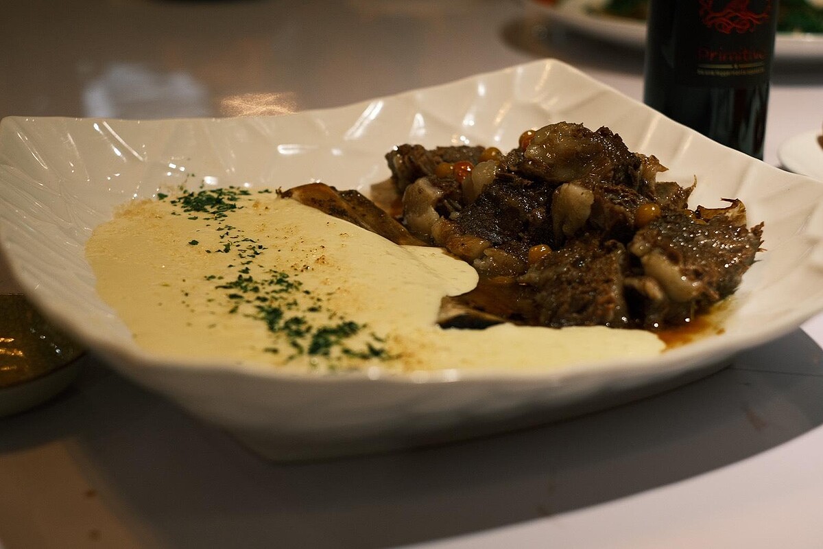 牛小排以粽葉慢燉至酥爛入味,肉汁融入洋芋泥與湯圓,法式奶油的潤滑感結合中式燉煮的濃郁,吃進口裡溫潤飽滿。