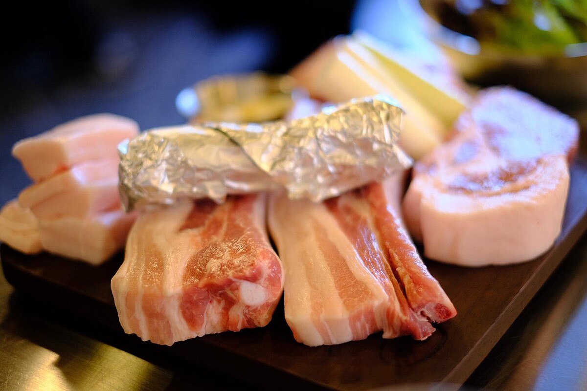 「金豬食堂」台北店提供單點與彈性套餐(2~5人份)兩種選擇,每人低消600元,套餐均價約每人950元,與韓國當地價格同步。從主餐肉品、泡菜鍋、韓國拉麵、白飯到韓國空運醬料,毫無台味魔改,百分百韓國原汁原味直接搬進台灣。