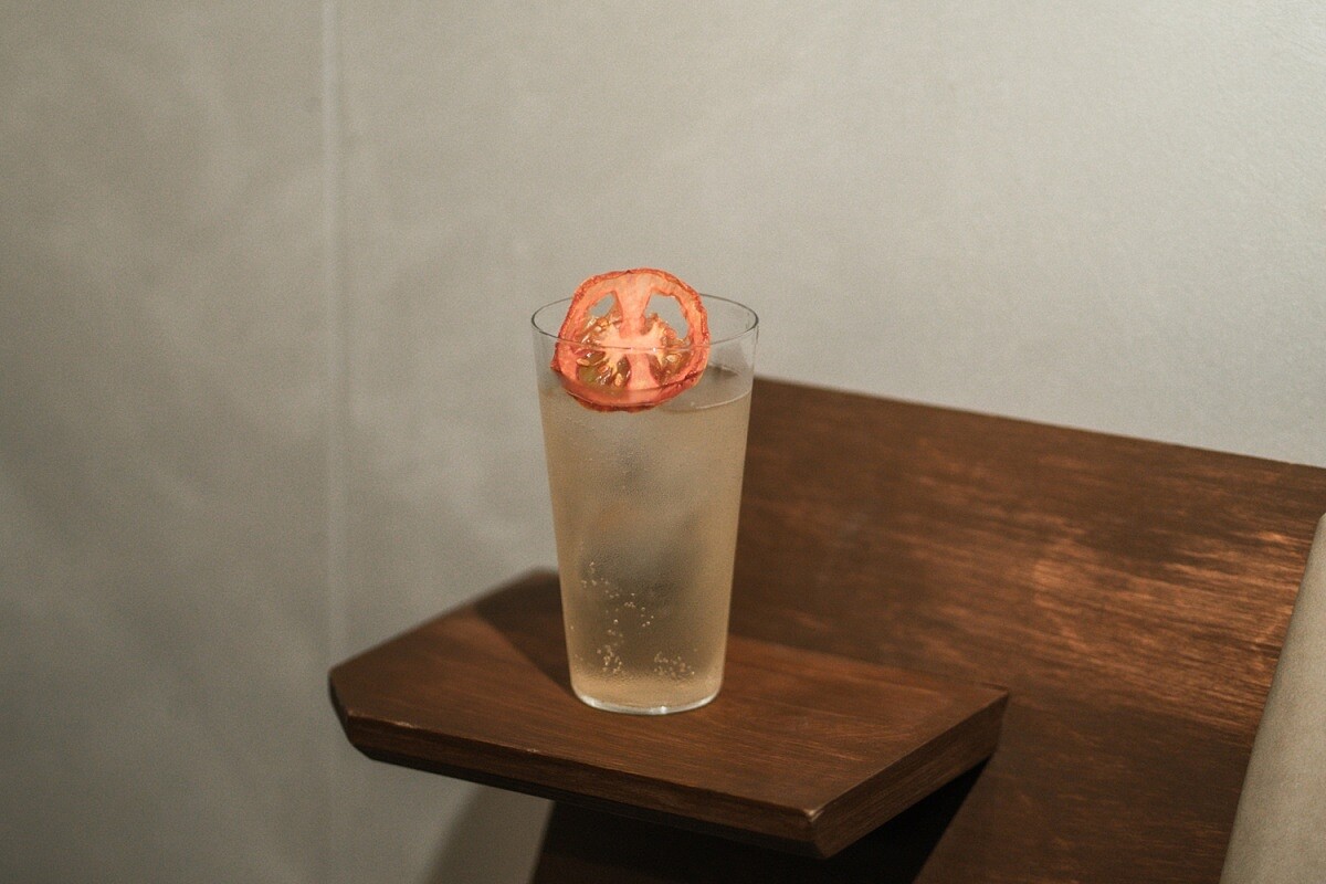一款挑戰甜與鹹邊界的創新之作。第一口,輕盈優雅的白桃與草本調性如晨曦般緩緩展開。隨後,意想不到的新鮮番茄帶來微妙鹹感,與通寧水的氣泡感相互碰撞。最後,橙花的香氣在上顎盤旋,留下持久的餘韻。這不僅是一杯飲料,更是一場味覺交響樂。