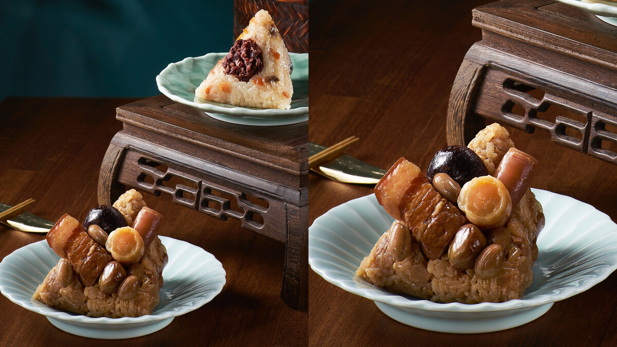 北部饕客引頸期盼的台北晶華酒店,以人氣粵菜餐廳「晶華軒」為首,推出推出「鮑魚花膠盆菜裹蒸粽」與「松茸燕窩粽禮盒」兩款頂級粽禮。前者靈感取自香港傳統盆菜,把鮑魚、海蔘、伊比利火腿、花膠、鮮甜干貝等頂級食材全包進,每顆足足有600克重,無疑是端午節頂級饗宴。「松茸燕窩粽禮盒」則是有3款鹹甜口味:山珍野菇粽、艾葉蓮子八寶粽、燕窩芋香粽,同樣把奢華美味結合精心製作,勢必滿足收禮者的心。