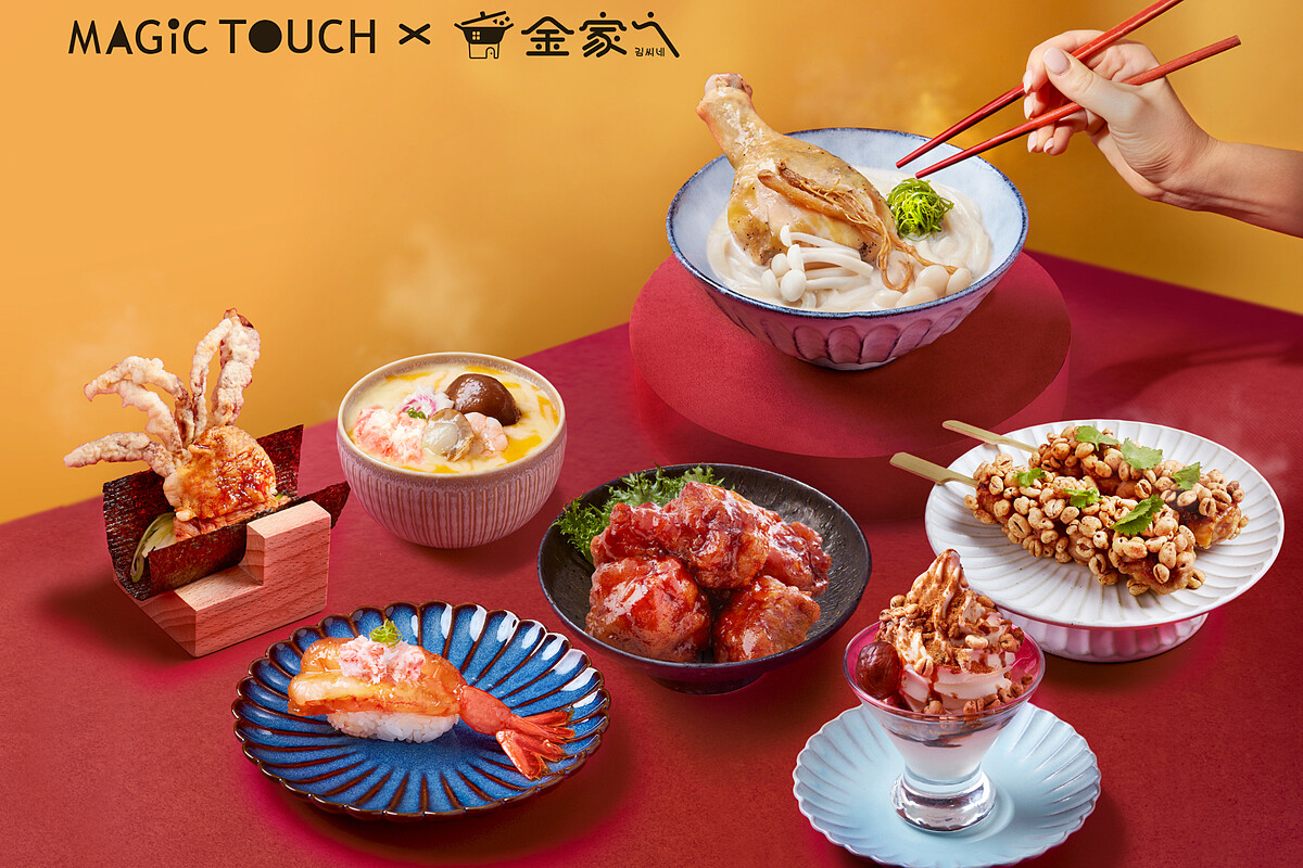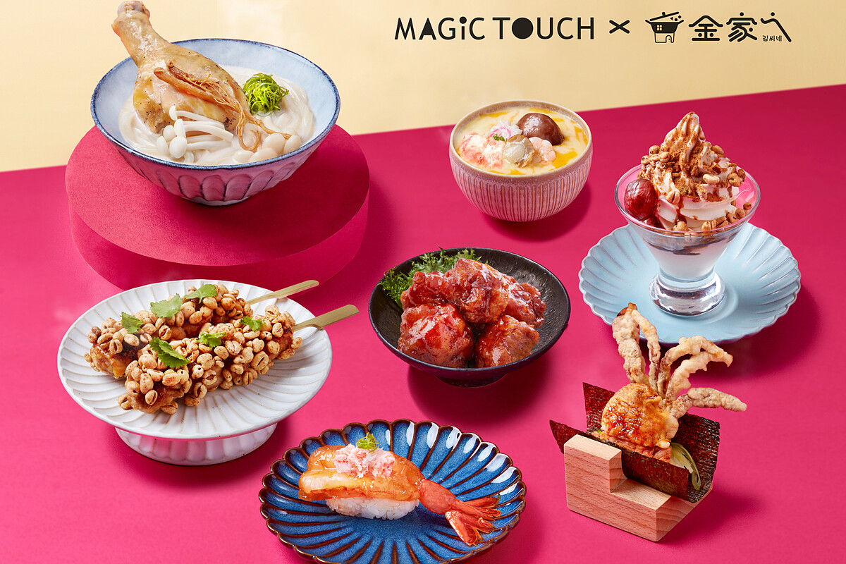 另一邊,MAGiC TOUCH聯名韓系百萬YouTuber「韓勾ㄟ金針菇」的品牌「金家ㄟ」,推出7道創新韓潮料理,每道都融合韓式食材與日式手法,顛覆你的味蕾印象。
