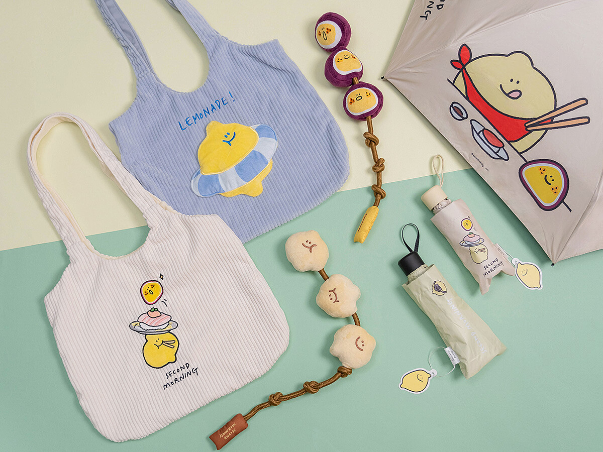 肩背包Lemony款(5/19開賣)、百香果款(5/26開賣):療癒角色圖樣超吸睛,加購價各399元。