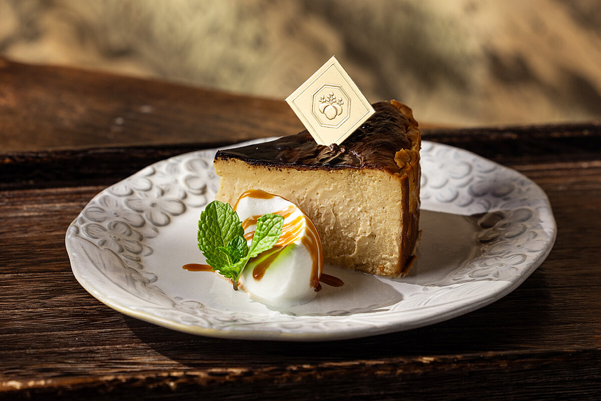 靈感來自日本庭園「枯山水」哲學,「箱庭 山本屋」以侘寂美學為出發點,從甜點、空間到氛圍都講究極致的簡約與深意。除了享受療癒系甜食與洋式輕食,現場也展示九谷燒、漆器等工藝品,連服務人員都穿著與空間呼應的卡其、橄欖綠制服,細節控看到這裡已經準備手刀出發了吧?
