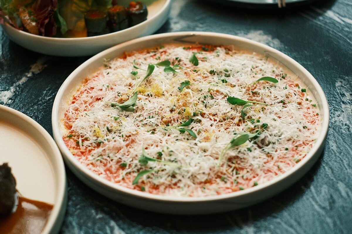主廚Hansang Cho(Chef Han)出生韓國、成長於美國,他說boon的菜不是傳統韓菜,而是他在不同文化中長大後「怎麼吃、怎麼享受食物」的結果。甜點主廚施柔安(Chef Cathy)則在加拿大長大,擅長用法式技巧結合亞洲食材,像是把韓國香蕉牛奶、大醬、米餅等童年記憶變成精緻甜點,吃起來有故事感,也有熟悉的溫度。