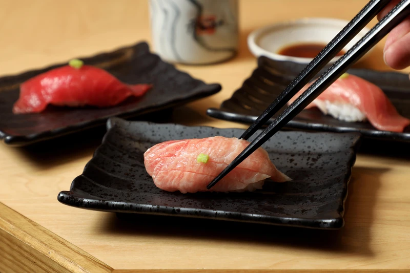 店內選用每尾50至60公斤的黑鮪魚,供應赤身、中腹、大腹部位,並搭配本山葵及自家製醬汁,推出招牌「醬漬鮪魚」,一口封存鮮香油脂的魅力。