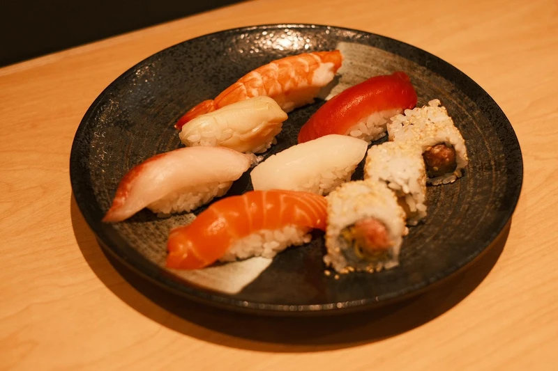 店內主打127道日式料理,70%為壽司與生魚片類,30%則是天婦羅與蕎麥麵等熱食。其中「伊勢龍蝦握壽司」使用來自日本千葉的伊勢龍蝦,肉質飽滿鮮甜;還有「活鮑魚壽司」與「燉煮鮑魚」兩種吃法,前者爽脆鮮美,後者則是經高湯慢燉、嫩口入味。