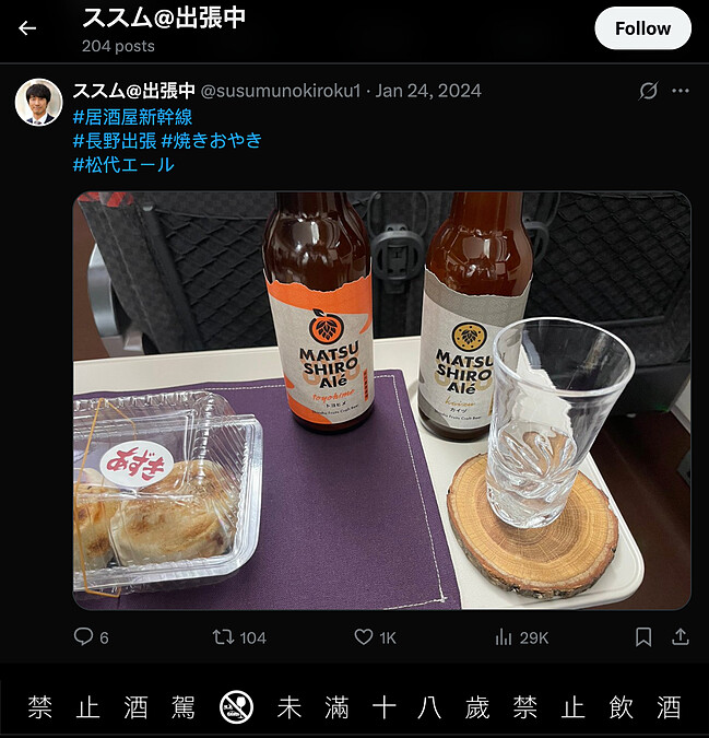 接著當然是先拍美照,不忘替這次主題命名,例如 「加賀百萬石的奢華」,打上標籤、發推文,立即啟動「居酒屋新幹線」的SNS分享模式。節目本身也真實經營推特帳號(ススム@出張中),和熱愛居酒屋新幹線的網友們互動交流,就像是線上深夜酒場,雖看似一人獨飲,高宮在品酒的同時,不時傳來四方網友的熱烈討論,像真實居酒屋般熱熱鬧鬧不孤單,這種自得其樂的方式,讓人下次到日本搭新幹線,巴不得也想立刻打開Google Maps,規劃一場屬於自己的「鐵道獨酌居酒屋之旅」。