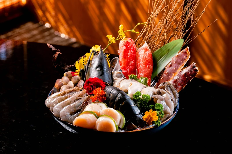 每一桌都配有專業侍食師,從帝王蟹拆殼、雞肉去骨到玉米去梗、煮雜炊,全部由侍食師一手包辦。服務人員分為青銅、白銀、黃金三個等級,保證桌邊服務質量穩定又有職人風格。你只需要坐著享受,看著眼前的龍蝦變成四道藝術品上桌,從視覺到味覺,沉浸感超越以往所有鍋物體驗。