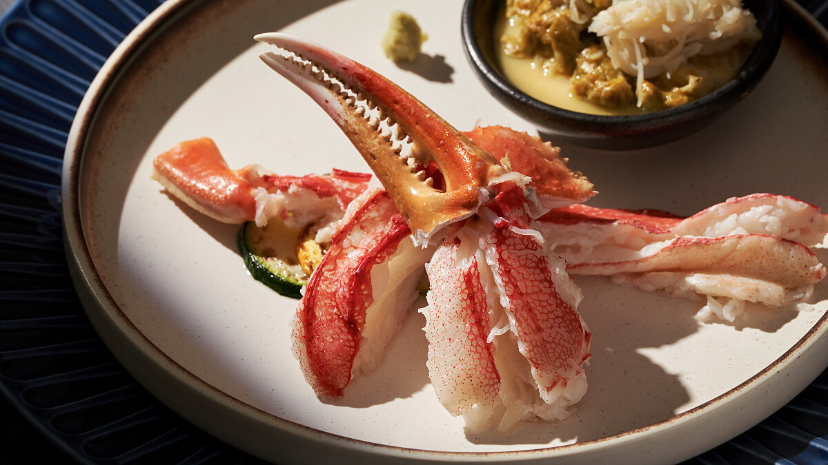 嚴選活體北海道松葉蟹,以鐵板清蒸技法鎖住鮮甜原味,再搭配特製米醋勾勒出酸香平衡,Q彈緊實的蟹腳肉質讓人難以抗拒。