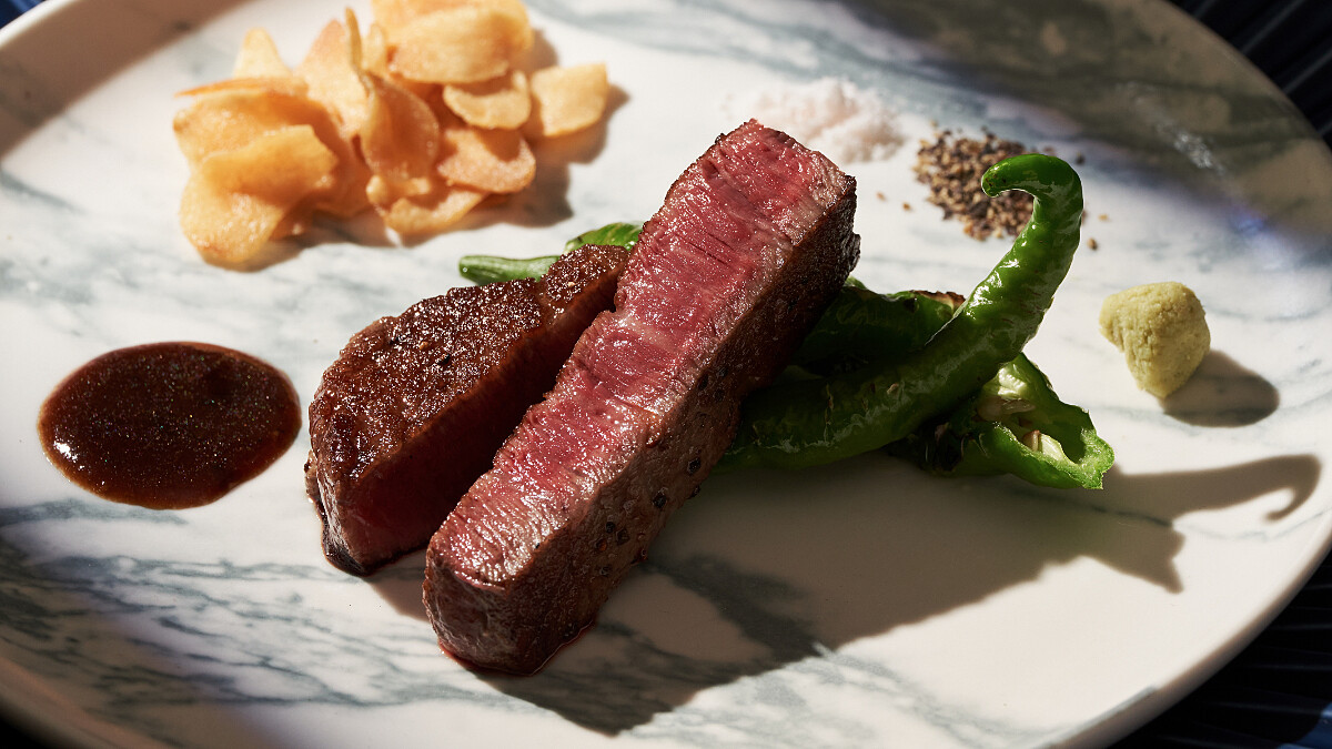 取自菲力最稀有的核心部位,一頭牛僅能取出約600克,油花分布精緻均勻,柔嫩中蘊藏濃郁肉香。