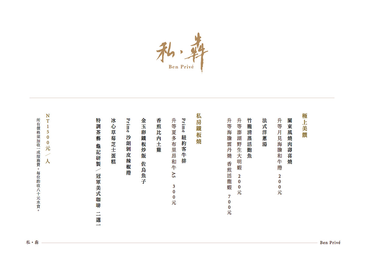 訂位平台專線:可上「私・犇|Ben Privé」Inline訂位平台,或電洽0958-168-153