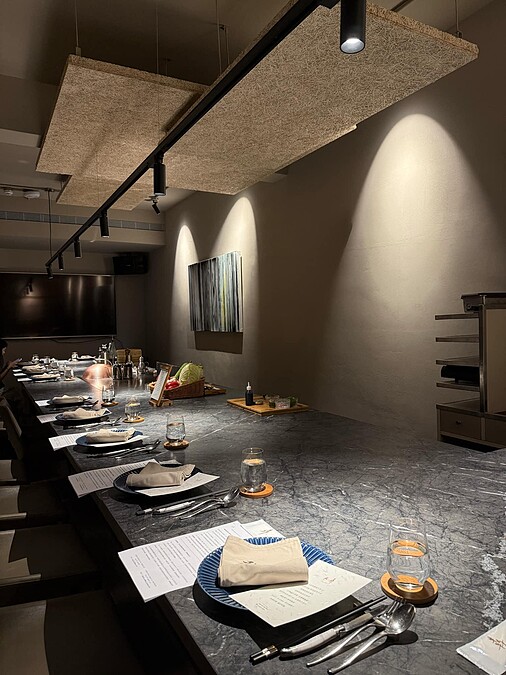 《私・犇 鐵板燒》採全預約制、不接散客也不開放排隊候位的營運模式,所有用餐皆須事先透過線上或電話完成預約,共有16位與8位的兩包廂,大包廂低消4萬,小包廂低消2萬。
