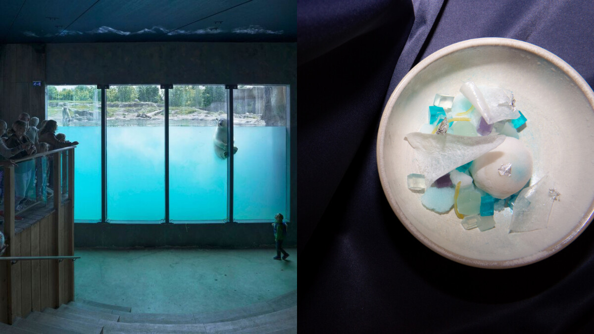 甜點部分靈感來自旭山動物園的白熊,以冰涼馬鈴薯大福搭配藍白色系的日式元素,呈現圈養動物的可愛視覺與全球暖化的反思並存。