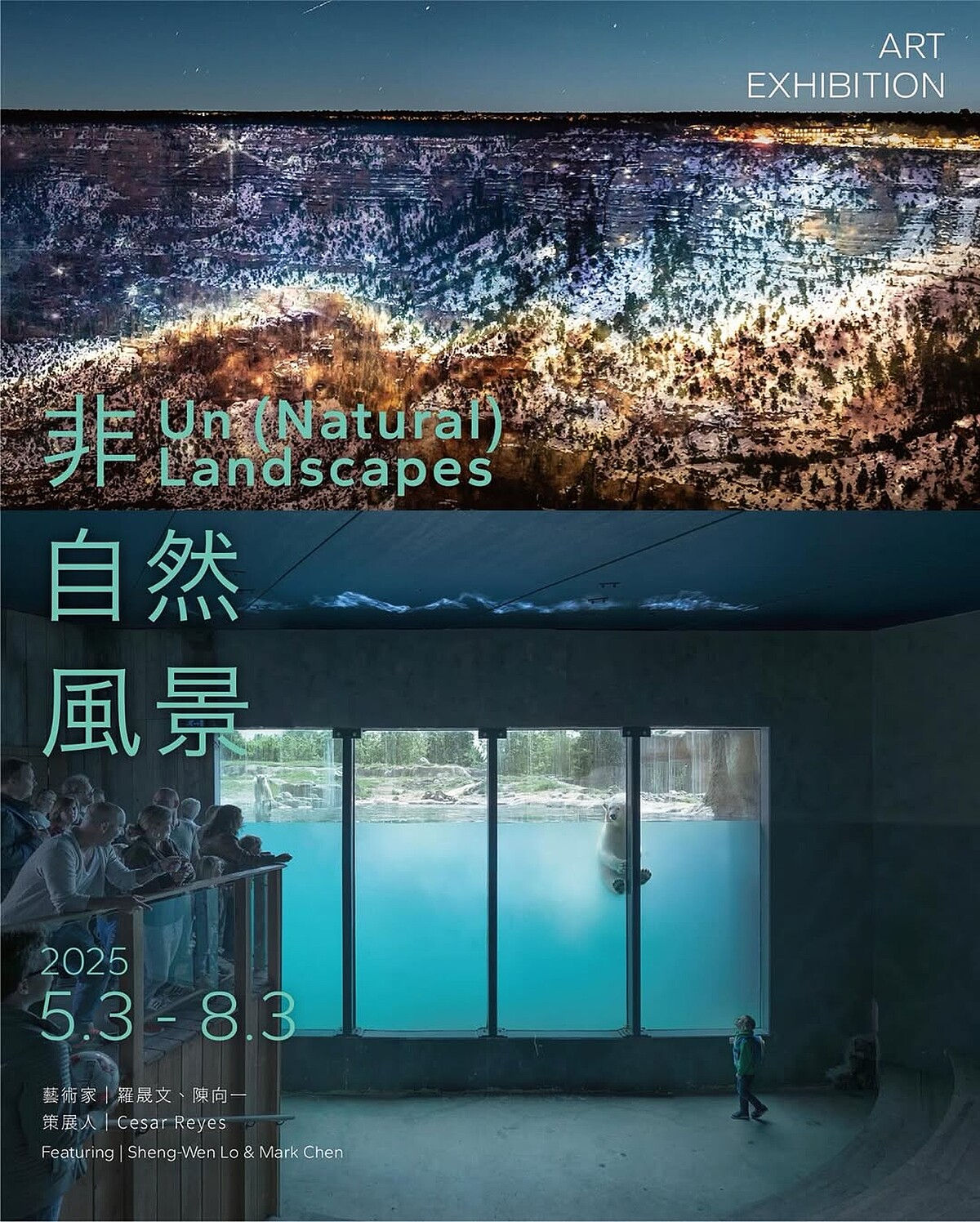 這次The StudioxAvocado Art Lab展出的《非(自然)風景》,其中藝術家陳向一透過自製投影裝置,將NASA與ESA的天文影像投射於美國各地地貌與自然景觀之上,創造出宇宙與大地交會的詩性畫面,而羅晟文則是展示「白熊計劃」與「落塵 Fallout」兩大系列,以紀實攝影回應人為活動對自然的影響,展覽將展至今年8月3日。