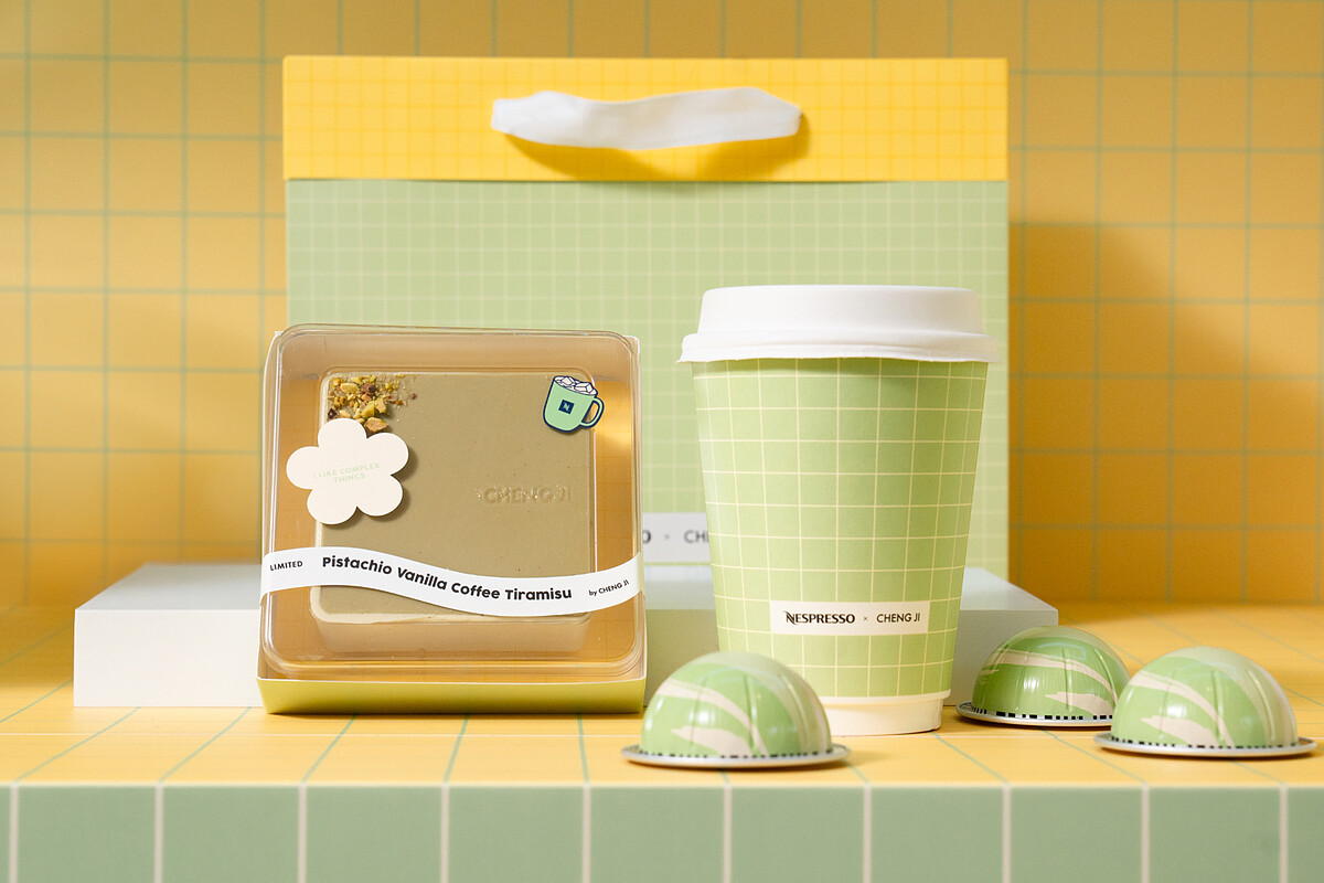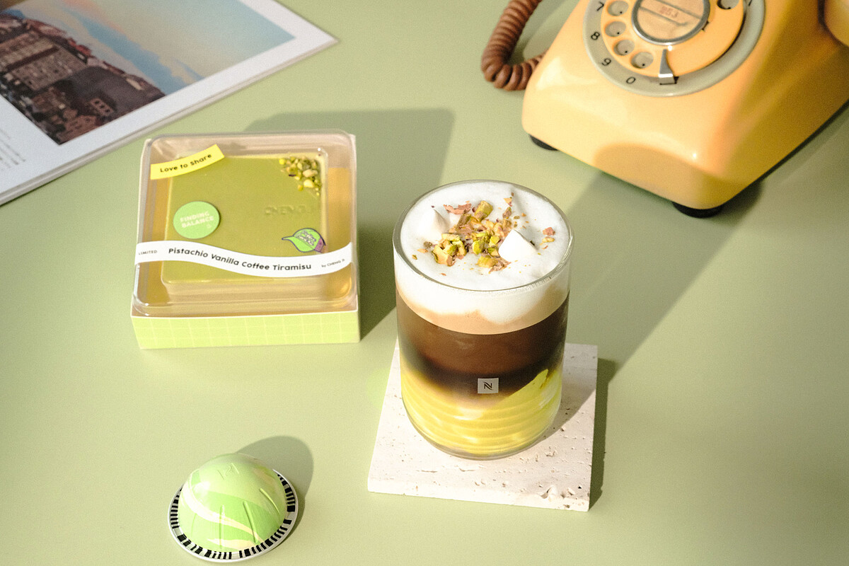 這次的聯名甜點絕對不是簡單的咖啡加甜點,而是從裡到外都講究到細節爆炸的創作。Nespresso選用旗下新推出的「開心果香草風味冰咖啡」,結合承繼擅長的義式法式混血手法,把經典提拉米蘇進化成一款你從來沒吃過的版本,奶香濃、果香足、咖啡魂強烈,每一口都像是三種靈魂在口中跳探戈。