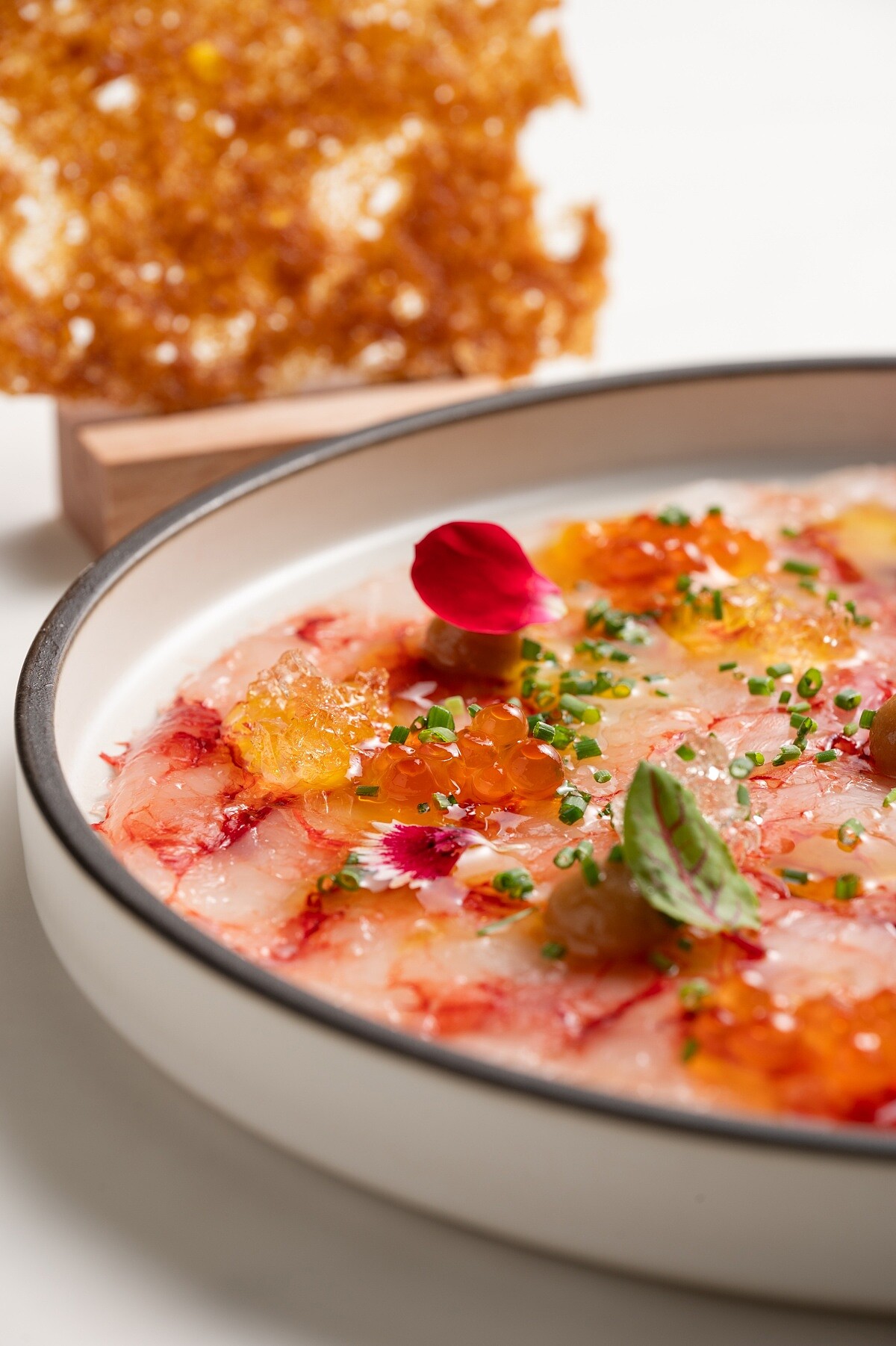 生食級天使紅蝦|脆烤雞皮片|鮭魚卵