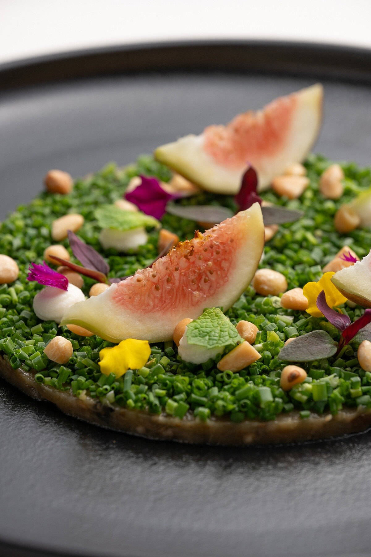 煙燻茄子|蝦夷蔥|山羊乳酪|無花果