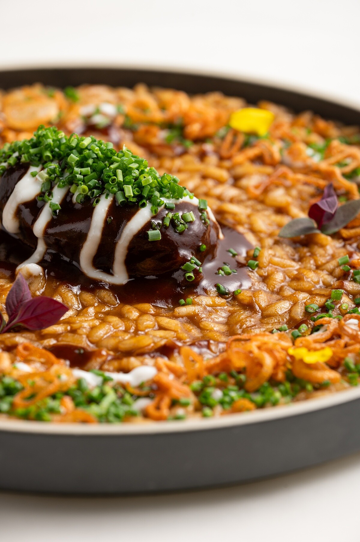 慢燉豬頰肉燉飯|黑巧克力醬汁|蒜奶醬