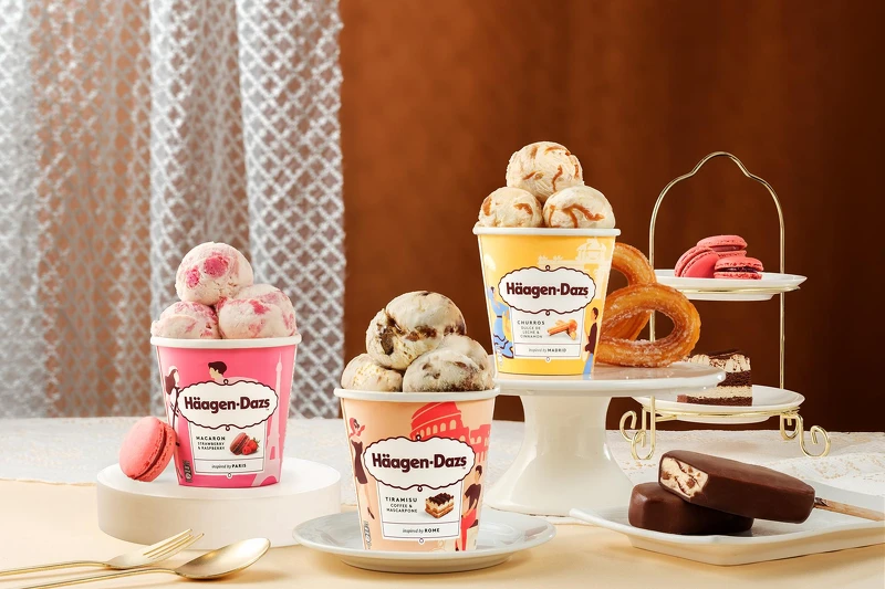 為完整這趟味蕾歐洲之旅,哈根達斯同步推出兩款以馬卡龍為主題的系列新口味,「草莓覆盆子馬卡龍」酸甜平衡、香氣清新,使用草莓冰淇淋與覆盆子果泥打造層次口感;「巧克力甘納許馬卡龍」則走濃厚路線,巧克力冰淇淋巧妙融入滑順甘納許,搭配酥鬆的迷你馬卡龍,濃郁滋味令人沉醉。兩款皆完美詮釋巴黎的浪漫氛圍,讓人一口嚐盡優雅風情。