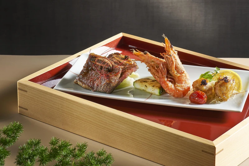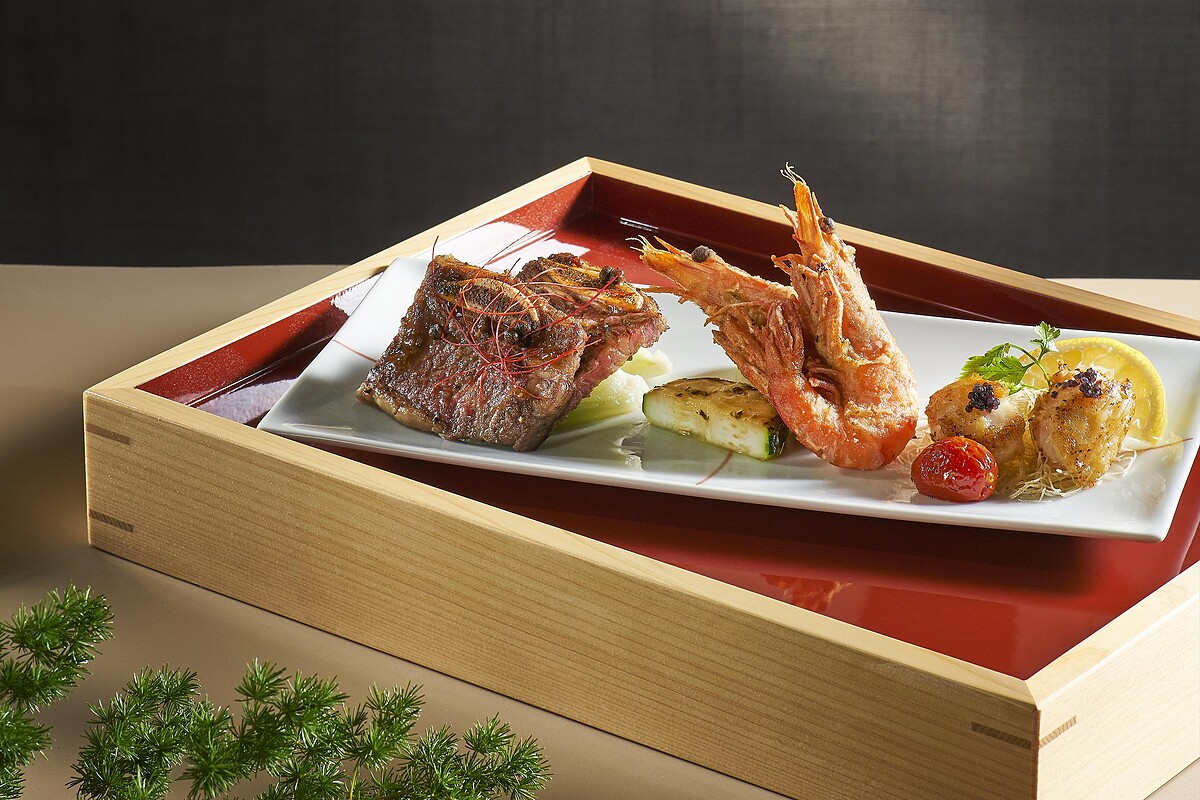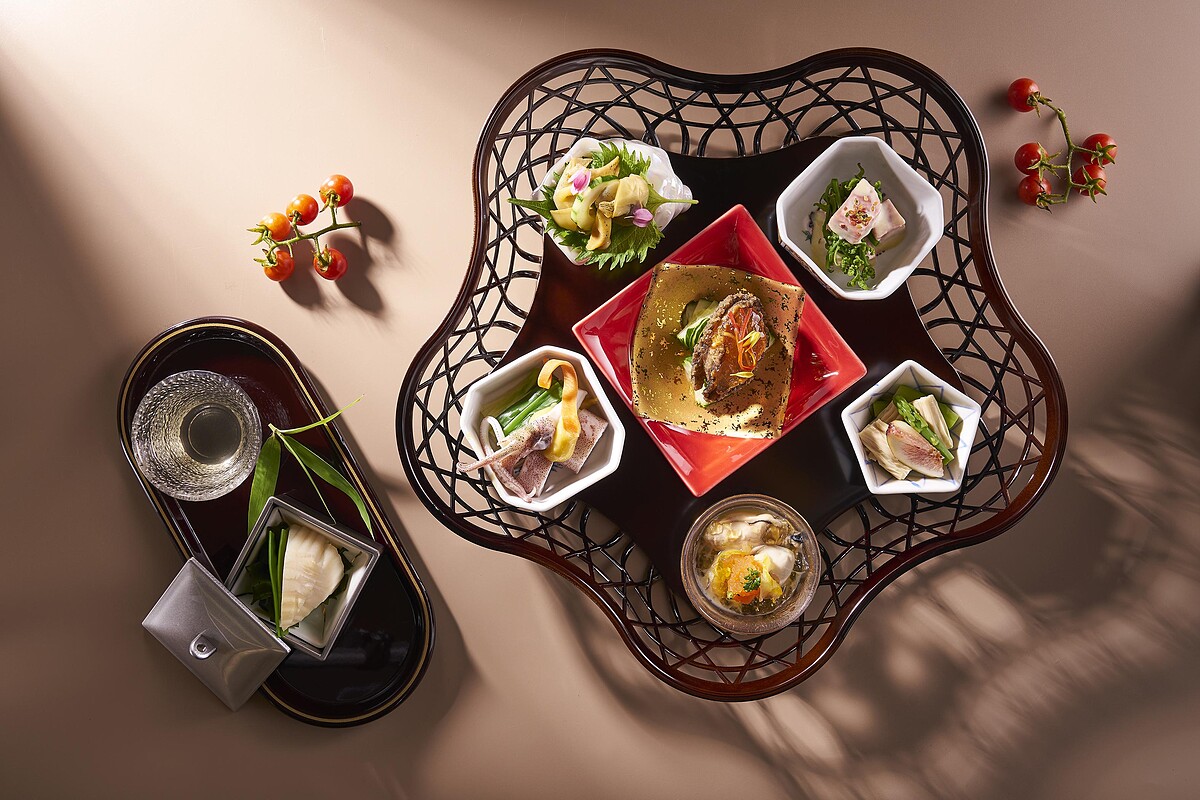 「NAGOMI 雅」此次特別與四間京都百年品牌合作,將隱藏巷弄中的老舖滋味端上餐桌,福島鰹(高湯)、本田味噌(味噌)、半兵衛麩(京麩與湯葉)、山六(西京漬)。其中多道限定主菜透過這些經典食材重新演繹京都風土,如選用A5等級黑樺牛與京麩的「和牛京麩山椒煮」、赤味噌香氣濃郁的「京麩豚腹肉赤味噌」、再到由「山六」西京味噌醃漬後燒製的「旬魚西京燒」,不只展現日本和食技藝,也重現京都日常中的飲食美學。