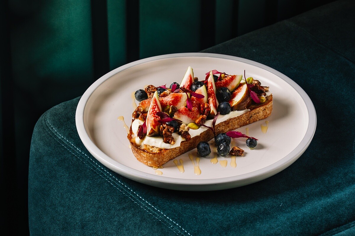 靈感來自 Robert 在香港咖啡廳意外品嚐到將藍莓和瑞可達起司的風味搭配,放在以奶油香煎的酸種麵包,再淋上些許蜂蜜,極其簡單的組合,滋味卻美好的讓人流連忘返。Robert 堅持每日自製新鮮瑞可達起司,改以新鮮無花果取代藍莓,所有元素一口咬下,軟綿又香甜多汁的果香與奶香交織,蜂蜜的甘甜尾韻更是一筆畫龍點睛。