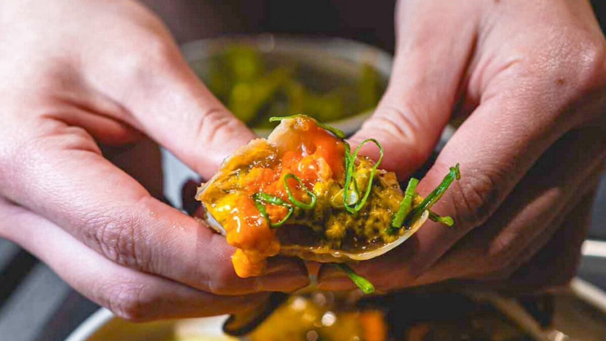 不同於常見的韓式重醬路線,味爵的生醃蟹以「剝皮辣椒醬蟹」打頭陣,選用活體肥蟹醃漬6小時,蟹膏呈飽滿金黃、質地綿密如漿,一撥開殼就能看見醬汁緊裹的蟹肉閃著微光。辣椒的甘香與蟹肉的鮮甜在口中融合,濃厚卻不死鹹,冰涼的口感非常適合夏天配飯、搭海苔享用。吃法簡單,擠出蟹身即可品嚐,不需工具也能優雅入嘴,是許多饕客一試就上癮的關鍵。