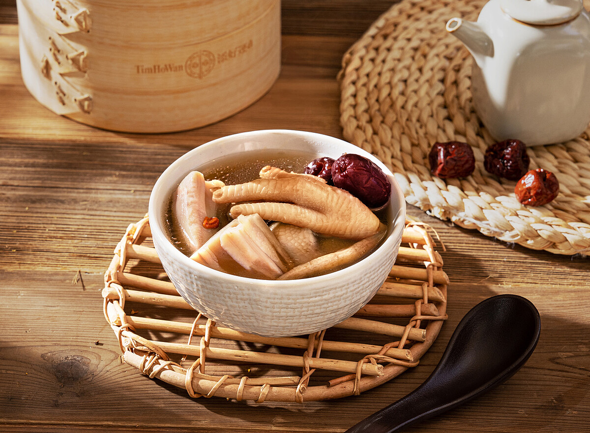 港味大餐怎能少了湯?主廚例湯—蓮藕雞爪老火湯選用蓮藕與雞爪,加入紅棗與枸杞慢火熬煮,湯色金黃,滋味溫潤。滿滿膠質加上細緻香氣,是港式料理中不可或缺的收尾角色。