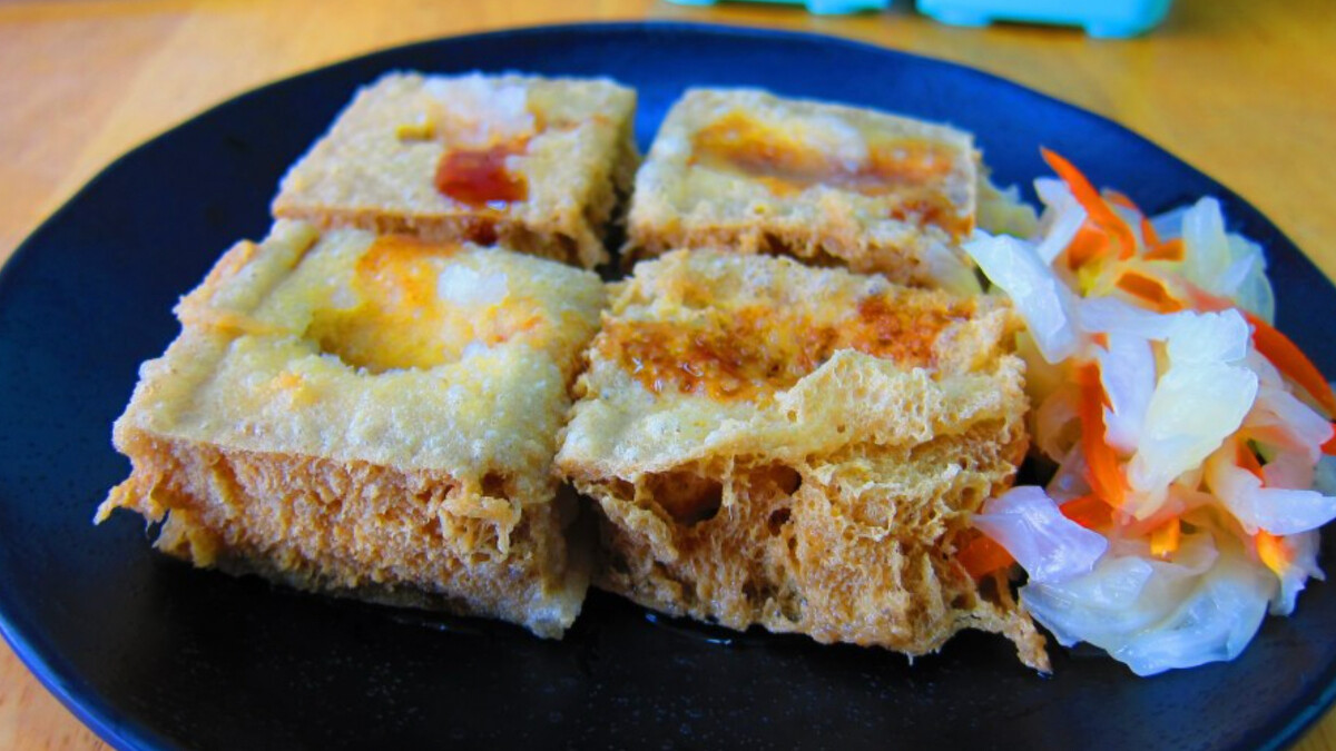 說到臭豆腐,台中人的口袋清單裡一定會有這家「濃鄉臭豆腐」,距離台中火車站大約步行7分鐘,門口經常排著長長人潮。臭豆腐屬於中部吃法,炸得金黃酥脆後,中間挖個洞,加入蒜泥、醬油和辣椒,先吃一口原味,再搭配酸甜台式泡菜清爽又涮嘴,此外店家還有提供飲料跟現煮的熱湯無限暢飲,銅板價美食還超佛心,沒理由不愛吧!