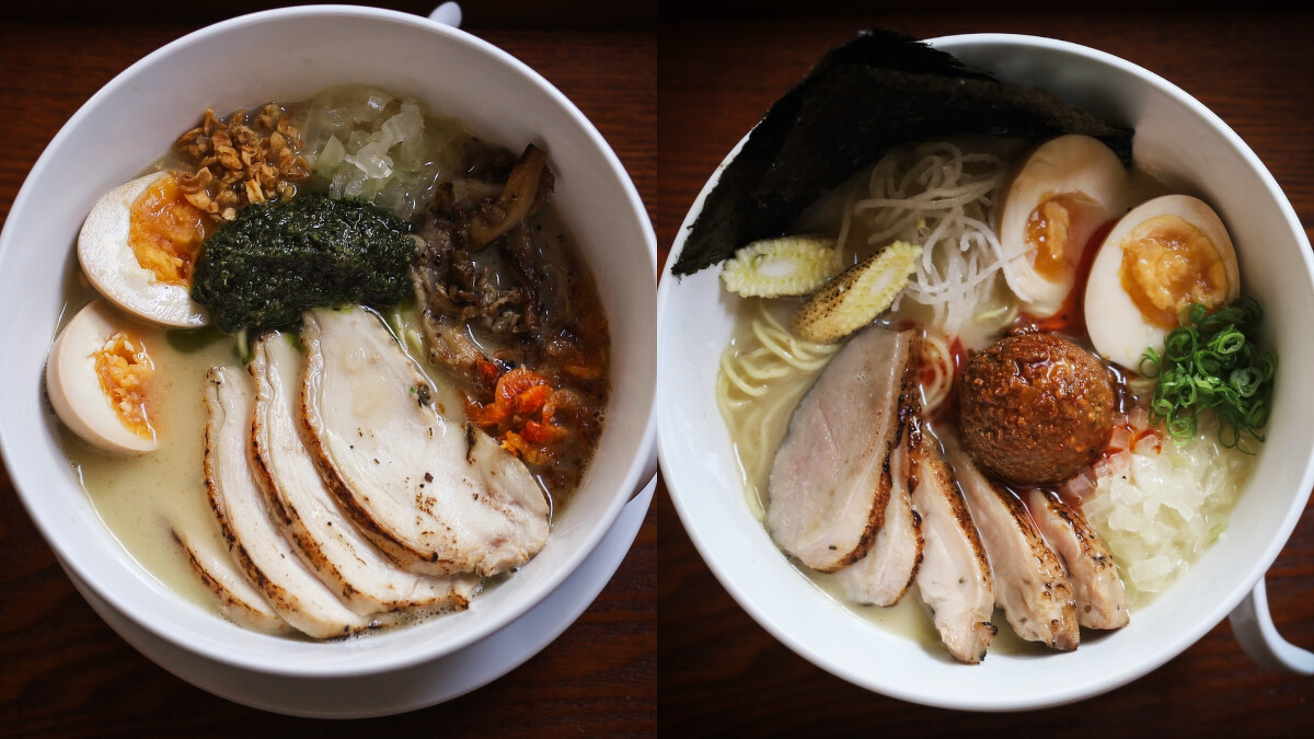 去年開幕的「高浪川」主打濃厚雞白湯拉麵,共有三種口味「塩味雞白湯」、「櫻花蝦青醬」與「辣味噌」,其中「櫻花蝦青醬」使用現炒的青醬搭配櫻花蝦及舒肥雞胸,再以菇類點綴;辣味以特製辣醬融入雞白湯,搭配雞腿與鴨肉,湯頭回甘保有層層豐厚的滋味,正適合深夜想來碗不無聊的拉麵人。