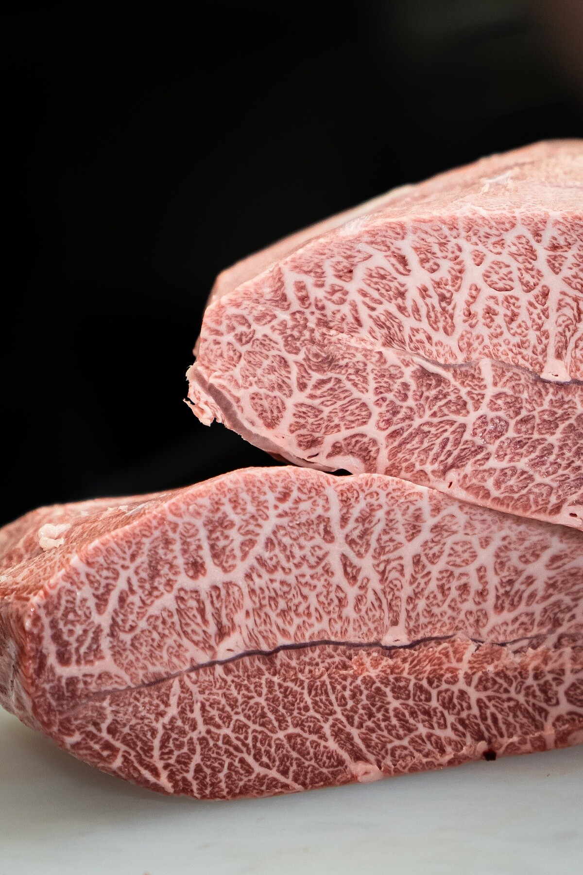 「伊藤牧場」是日本少數仍堅持獨立飼育方式的松阪牛牧場之一,從選牛開始就設定了高門檻。每頭小牛皆為精挑細選,且從出生起便有獨立空間飼養,避免競食與環境干擾。牧場人員可以密切觀察每頭牛的進食狀況,並調整餵食策略與育肥計畫,讓牛隻在最自然且穩定的狀態下成長。這次送抵台灣的松阪牛,飼育期長達40個月,遠高於一般市售和牛的育成週期。脂肪熔點低至13°C,肉質細膩柔軟但結構完整,油脂與肉味相互交織,既濃郁又不膩口。這頭牛同時擁有完整的血統認證,由松阪肉牛共進會出具文件證明,「俺達の肉屋」九週年,就以「一頭牛的極致風味」作為獻禮。