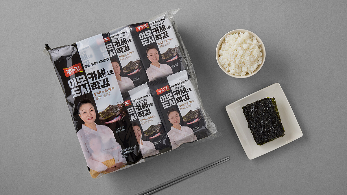 現在這片征服刁鑽味蕾的海苔正式進軍台灣,全台7‑11限量開賣由節目中「阿姨無菜單料理一號」金美玲親自監製的「姨母烤海苔」,一袋內含12包獨立小包裝,韓國原裝進口。製作過程講究,選用當地高品質海苔,刷上芝麻油與紫蘇油雙重香氣,再以細火反覆烘烤、雙面灑鹽。打開包裝香氣立刻撲鼻而來,入口瞬間鹹香酥脆,沒有任何花俏的調味,卻讓人忍不住一口接一口。