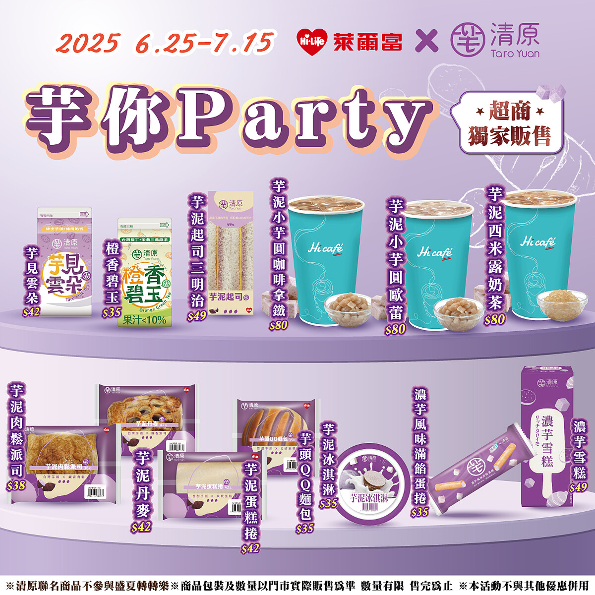 即日起至7月15日,全台萊爾富門市限時限量推出超過10款聯名新品,包含Hi café系列芋泥飲品、療癒系甜點、鹹香芋頭麵包與冰品,不管你愛喝的、愛吃的,這波都能一次滿足。