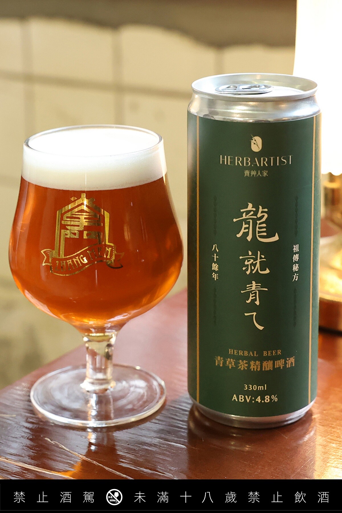 成立於2014年的掌門精釀啤酒,擁有自己的實驗室,多年來一直不斷開發新的產品,酒款總數已累積多達百種! 龍就青ㄟ是掌門與臺灣百年青草行品牌「賣艸人家」攜手合作所推出的聯名酒款,精選仙草、鳳尾草、白鶴靈芝、黃花蜜菜、甜菊葉、紅田烏、珠仔草等多種藥草,打造出層次豐富的青草香氣與回甘尾韻。不添加薄荷,避開一般青草茶的涼感印象,呈現溫潤奔放的草本氣息。用啤酒重新解構「青草茶」,帶給人青出於啤的驚喜。
