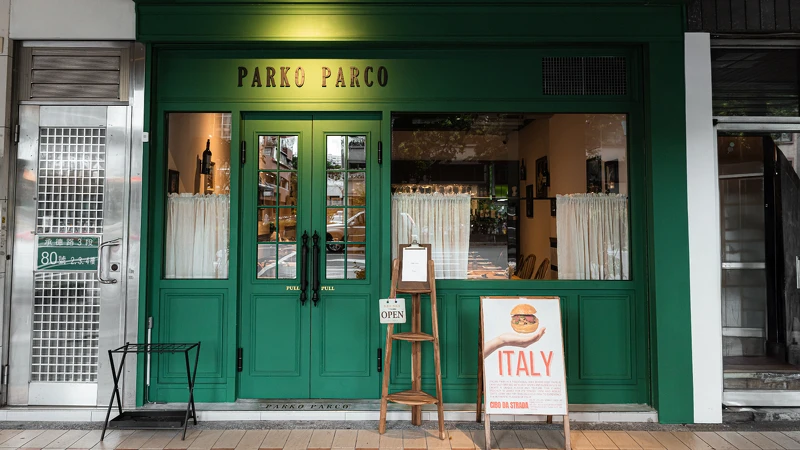 Parko Parco與PAI PAI空間設計也延續義大利精神,Parko Parco取義式小酒館作靈感,綠色門面與低彩牆面打造出鬧中取靜的氛圍;PAI PAI則是甜點控的夢幻藝廊,紅磚牆、仿古壁爐與畫作雕像陳設,共同構築如漫步義大利街角的空間體驗。