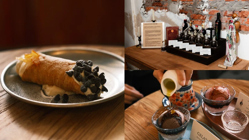 走過一牆之隔,PAI PAI CANNOLI & GELATO是專賣義大利水管卷(Cannoli)的甜點旗艦店,讓這道西西里傳統點心從電影裡跳入現實。酥脆的餅皮由主廚每日手作,內餡選用各式義大利原料變化而來,最受歡迎的是「開心果水管卷」,濃郁果醬與細緻質地,讓人一試難忘。